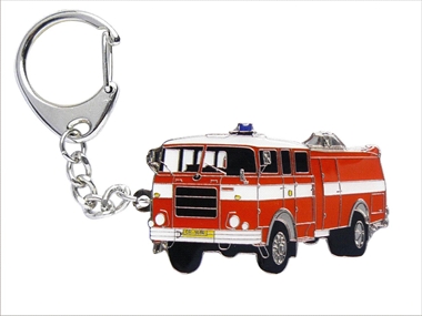 Kovový přívěsek na klíče hasičská auta (ruční barvení pod lupou) – velikost cca 6 cm.