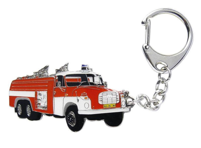 Kovový přívěsek na klíče hasičská auta (ruční barvení pod lupou) – velikost cca 6 cm.