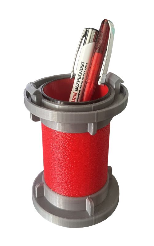 Držák tužek ve tvaru hasičské hadice je originální doplněk na pracovní stůl, do kanceláře nebo dílny a zároveň může posloužit jako stylový dárek pro hasiče nebo fanoušky hasičské techniky. Produkt je vyroben pomocí moderní technologie vícebarevného FDM 3D tisku, která umožňuje vytvořit realistické barevné detaily bez nutnosti dalšího lakování nebo úprav.