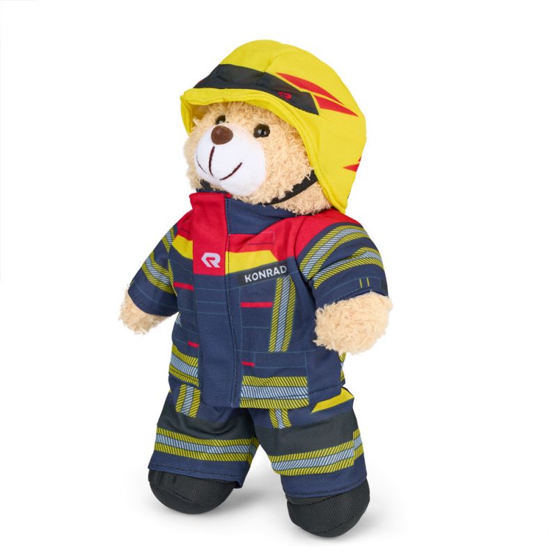 Konrad je oblečený jako hasič, aby dětem ukázal, že se nemusí bát skutečného hasiče. Roztomilý kamarád, který by němel chybět v žádném hasičském autě ani u malého hasiče.